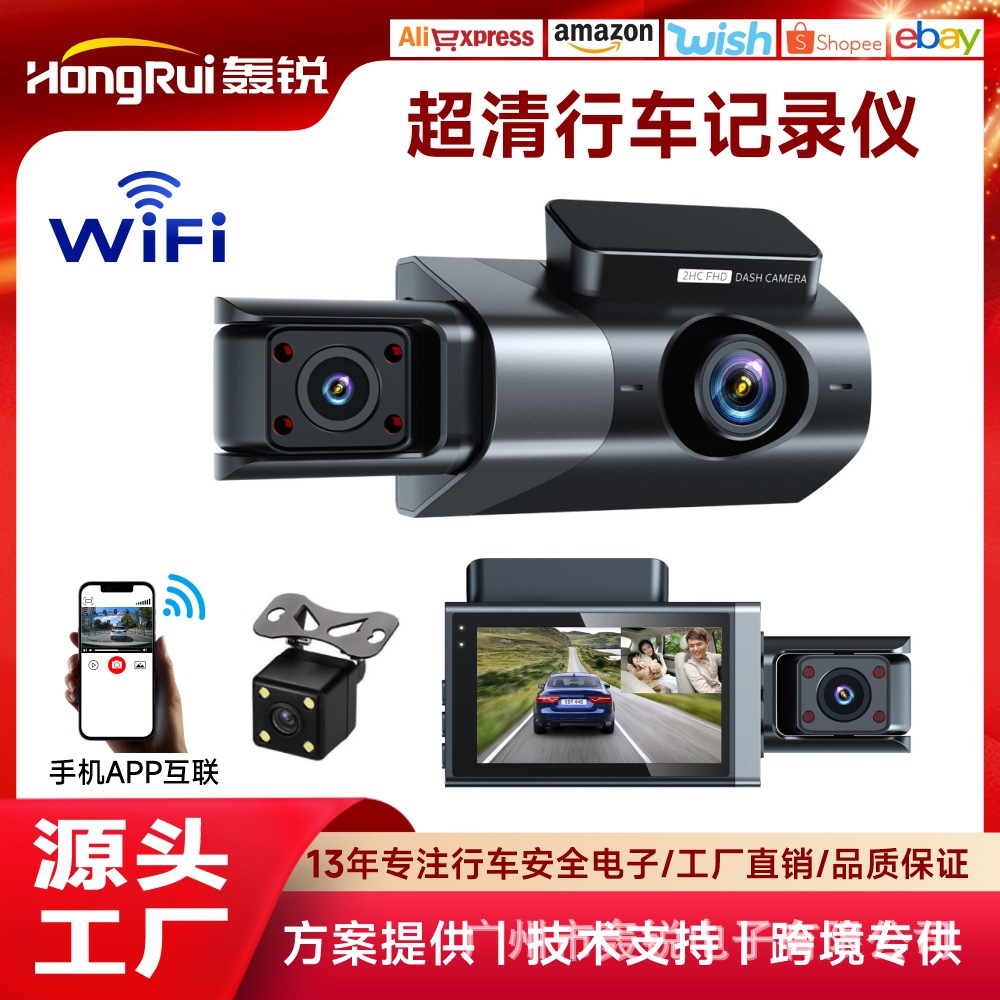 国境を越えた新型1080p hd記録計3レンズ3 Channel flashcam WiFi携帯電話相互接続