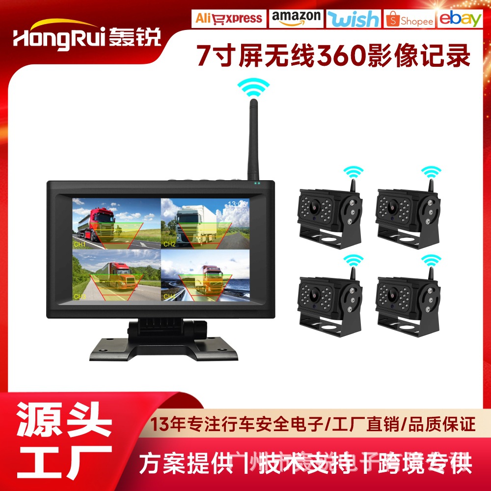 国境を越えたトレーラートラック360ドライブレコーダのバック映像7インチ無線デジタルハイビジョンカメラの夜視