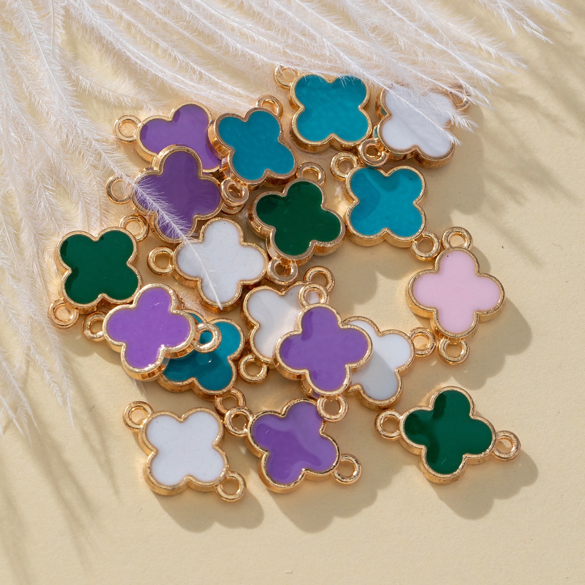 ダブルハンギングクローバーdiyペンダントファッション個性シンプル多色両面合金ドロップオイルアクセサリー小清新ペンダント