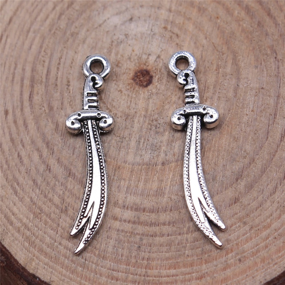 卸売りdiy亜鉛合金アクセサリー刀剣ペンダント6*24mmブレスレットネックレス古銀レトロ部品