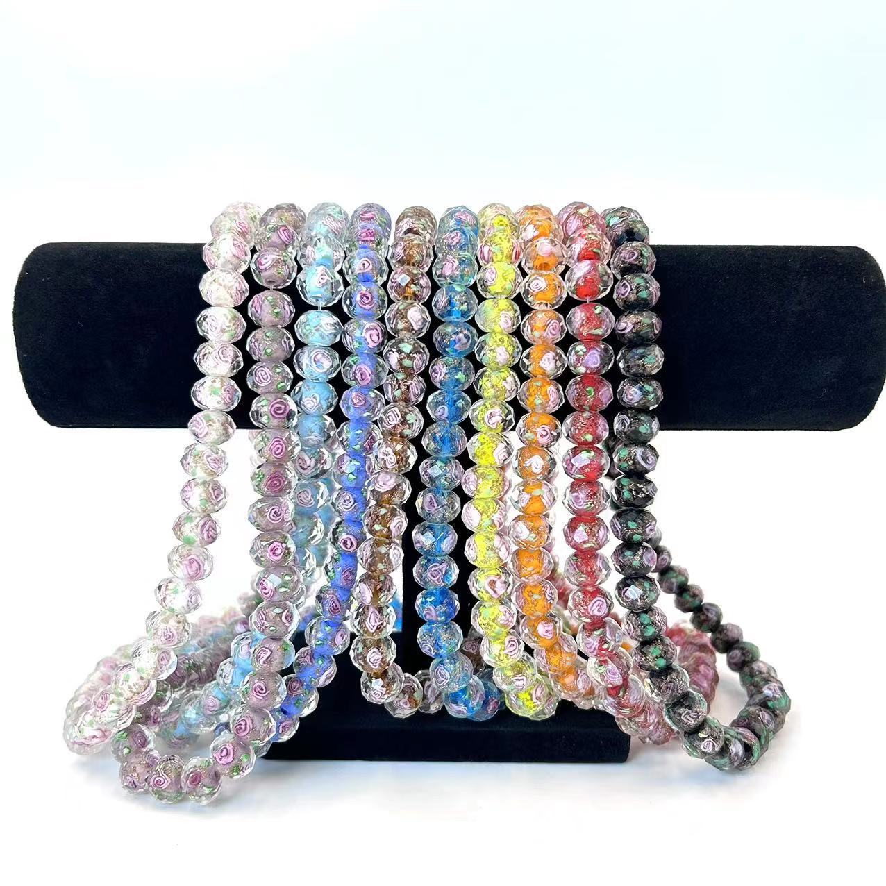 新作diy瑠璃切断面散珠小清新で美しいバラの数珠古典国風手作りアクセサリー