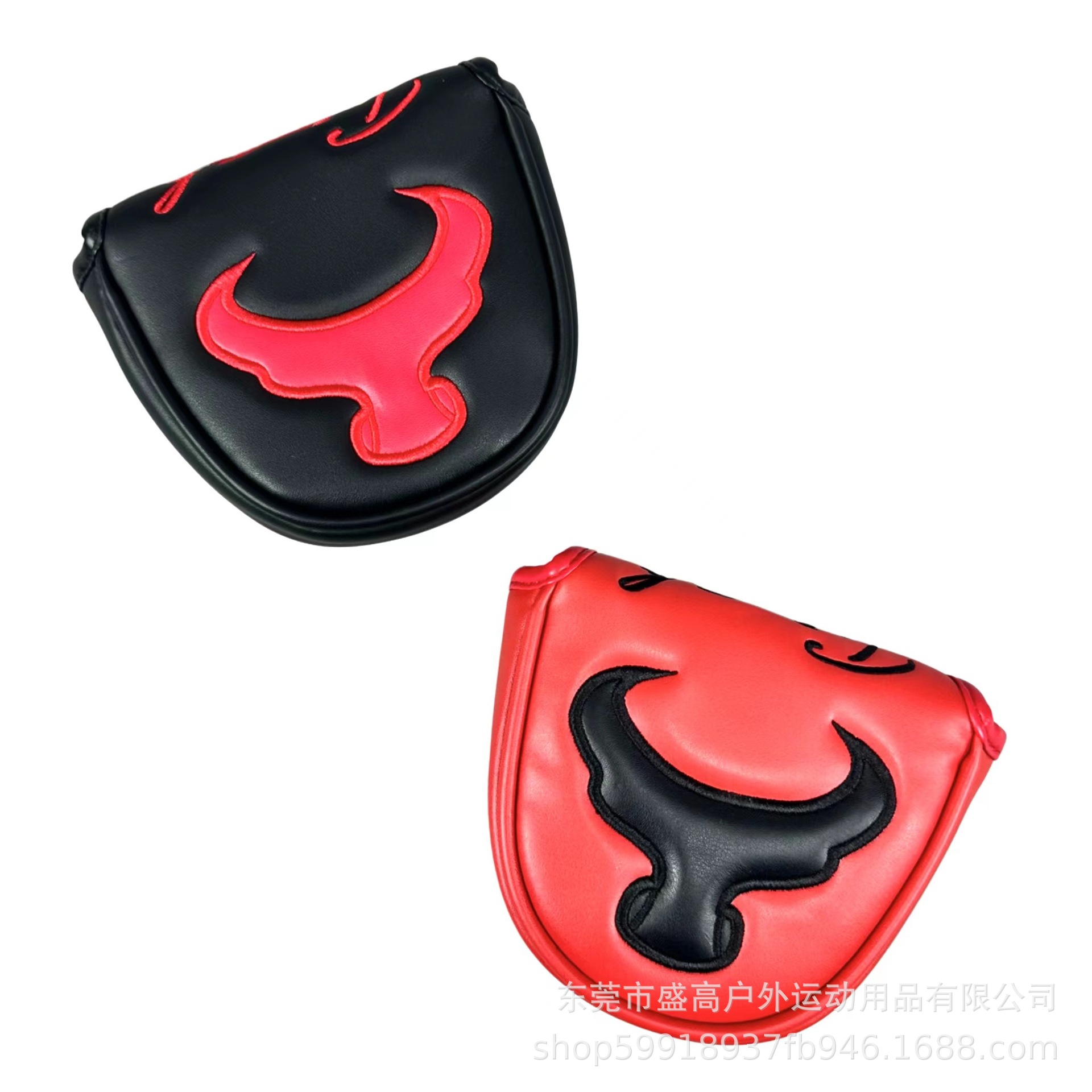 ゴルフ牛の頭の小さい半円の小型のパットのカバーのpu皮の防水の生地のぬいぐるみの保護カバーの磁気ボタン