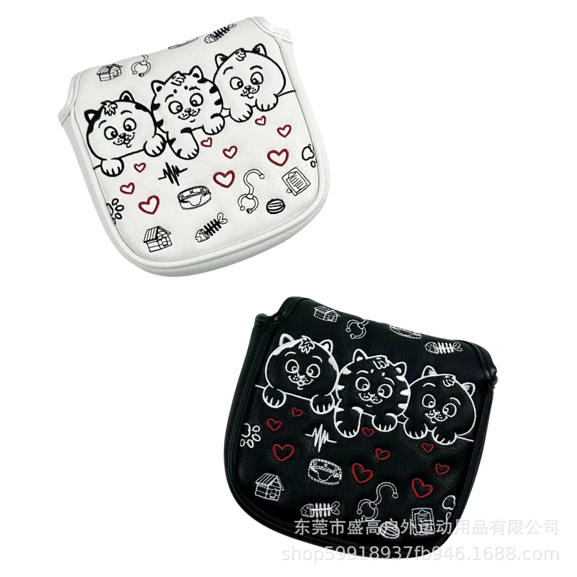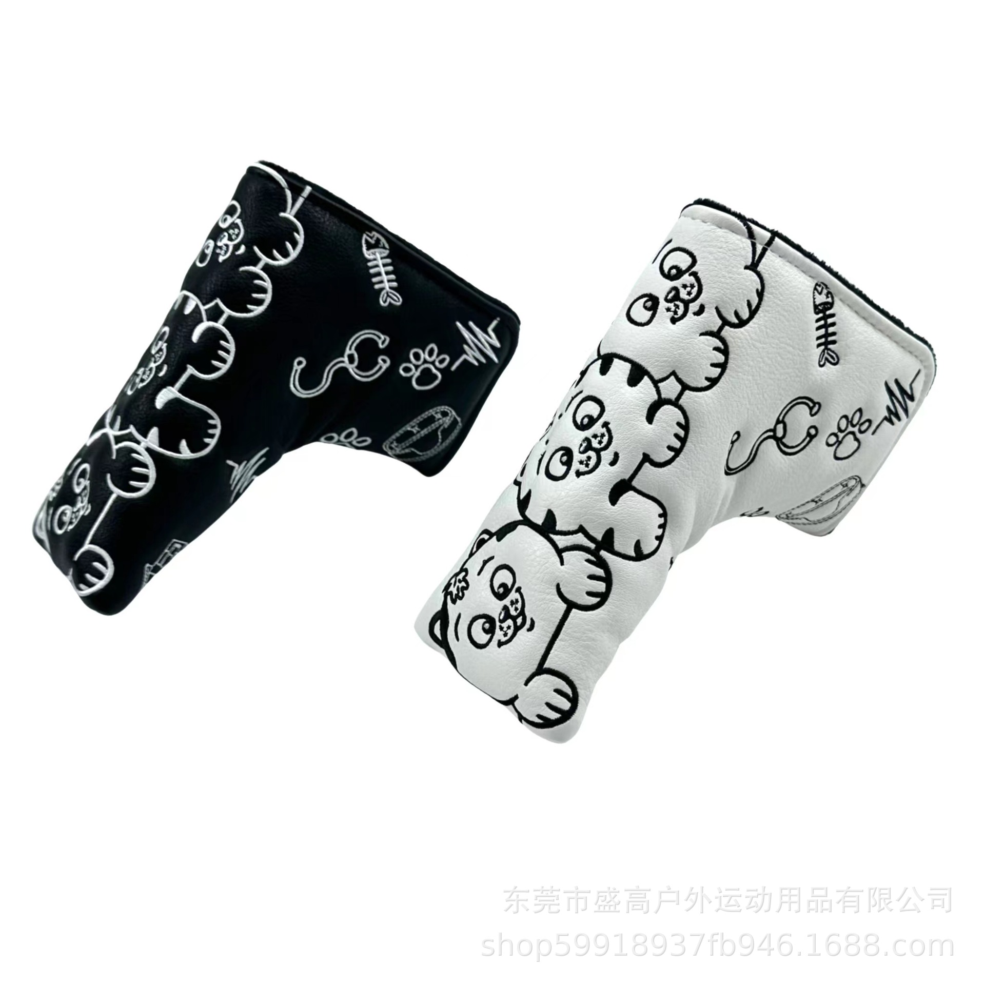 ゴルフ愛猫模様一字パットキャップ防水PU皮革L型パット保護カバーヘッドカバー磁気吸引