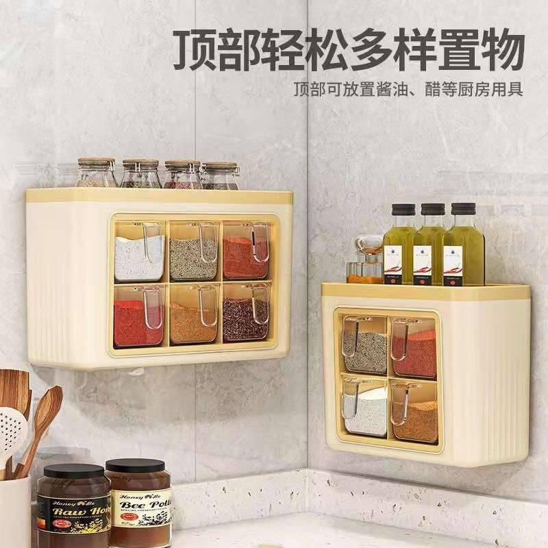 壁掛け式穴なしキッチン調味料ケース家庭用一体多格調味料ラック収納調味料味の素塩