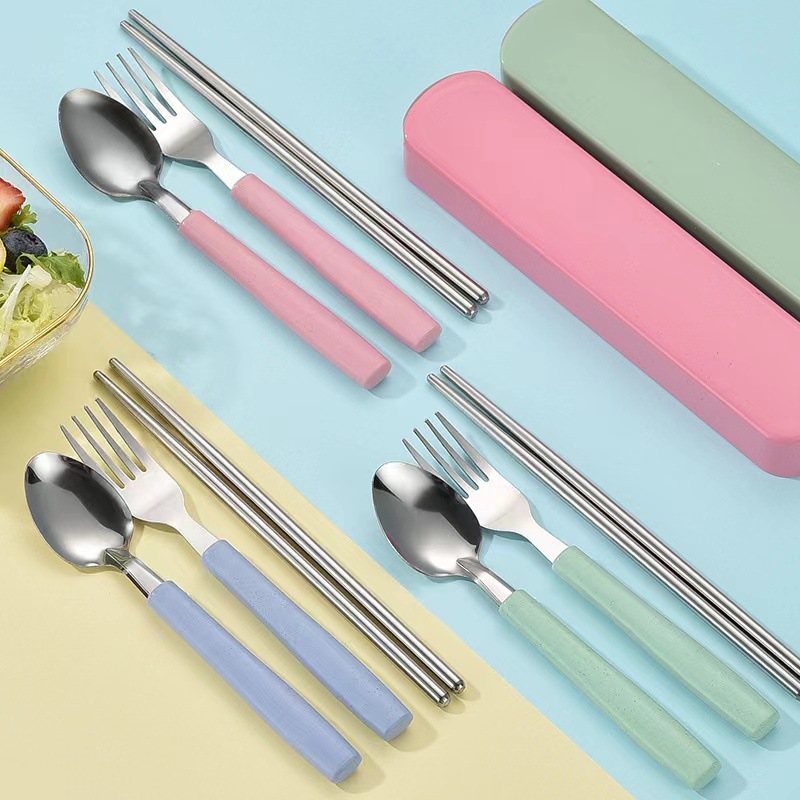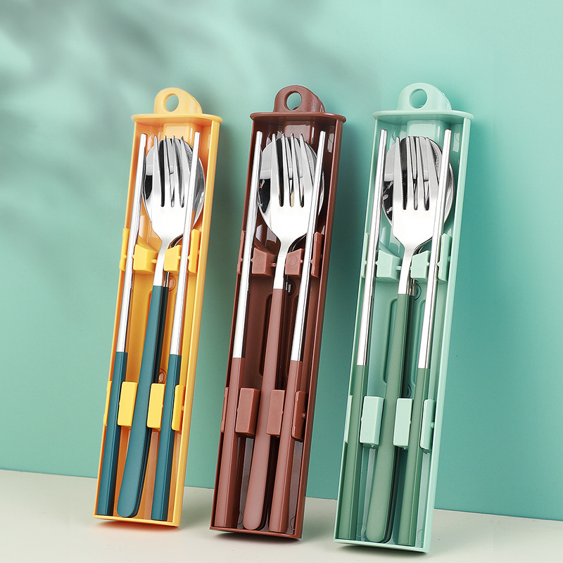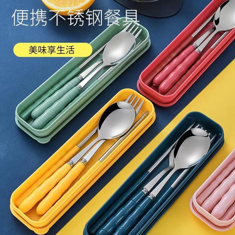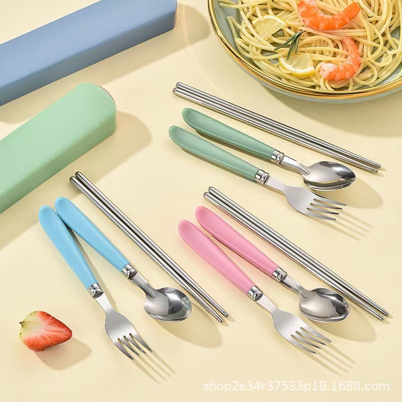304ステンレス新プルボックス便利食器三点セットスプーンと箸学生旅行食器セット