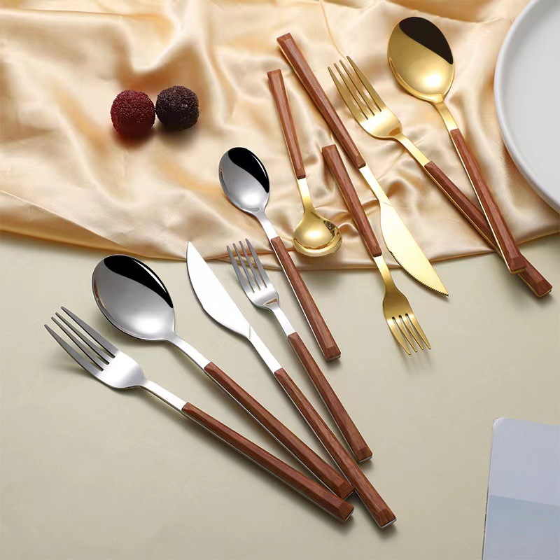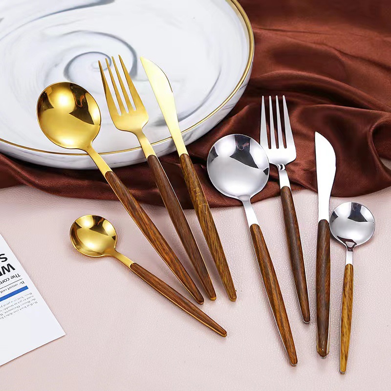 430ステンレス食器スプーン模造木目クリップ柄ポルトガルナイフフォークスプーンセット洋食ステーキナイフコーヒースプーン