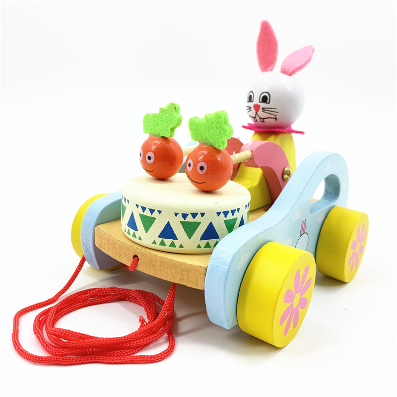 卸売ホット販売木製絶妙な動物トロリーウサギのトロリー子供の早期教育知育玩具幼児トロリー