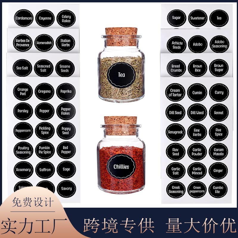人気クロスボーダー黒色円形香料缶ラベル厨房収納ガラス瓶缶英語防水調味料ラベル