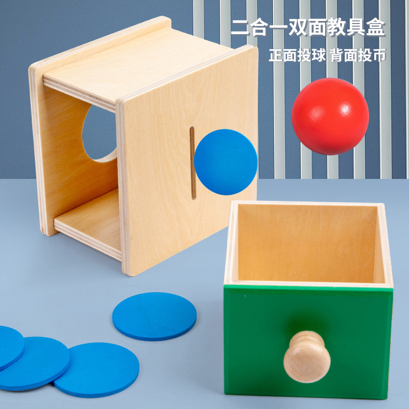 子供園の木製の二合一の知恵の箱は投げてコインの箱を投げます。