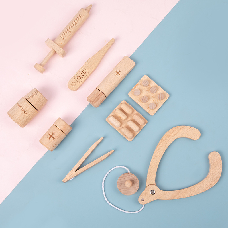 木製の幼稚園の医者のおもちゃの益智セットの赤ちゃんのままごとの子供の積み木の質の聴診器の対外貿易の卸売り