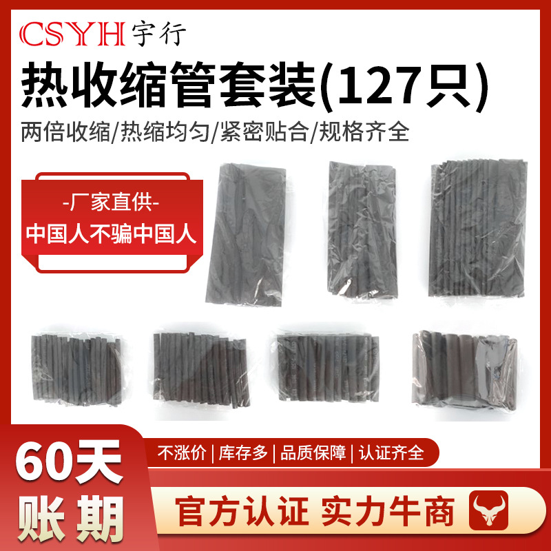セットボックス127pcs黒セットボックス袋入り熱収縮チューブ絶縁スリーブ家庭用電線修復チューブ熱収縮チューブ