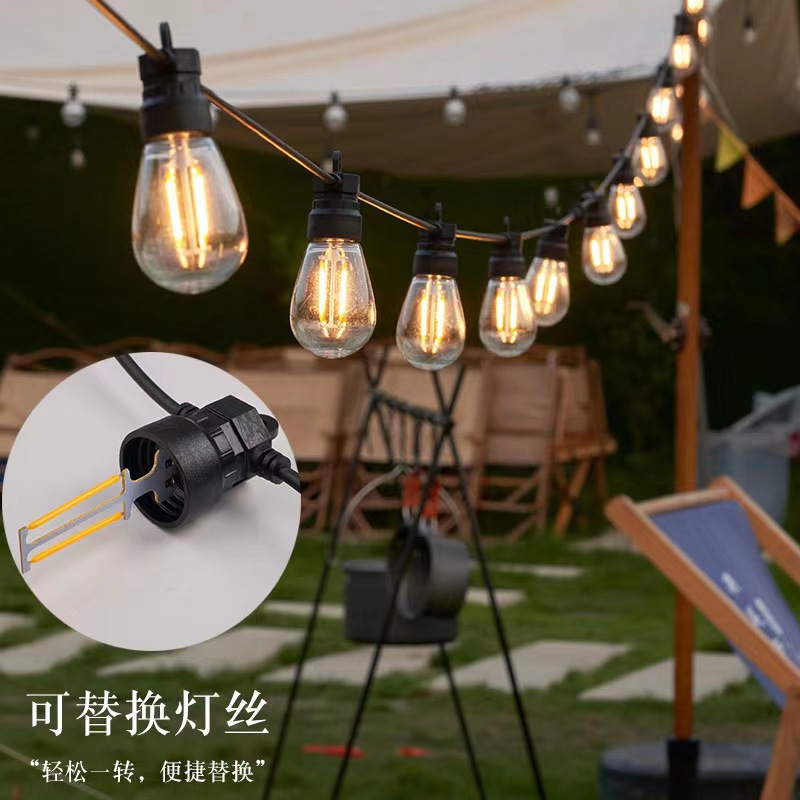 S14屋外ライトストリングランニングライト防水キャンプ雰囲気ライト庭装飾カラーライトLEDソーラーライトストリング卸売
