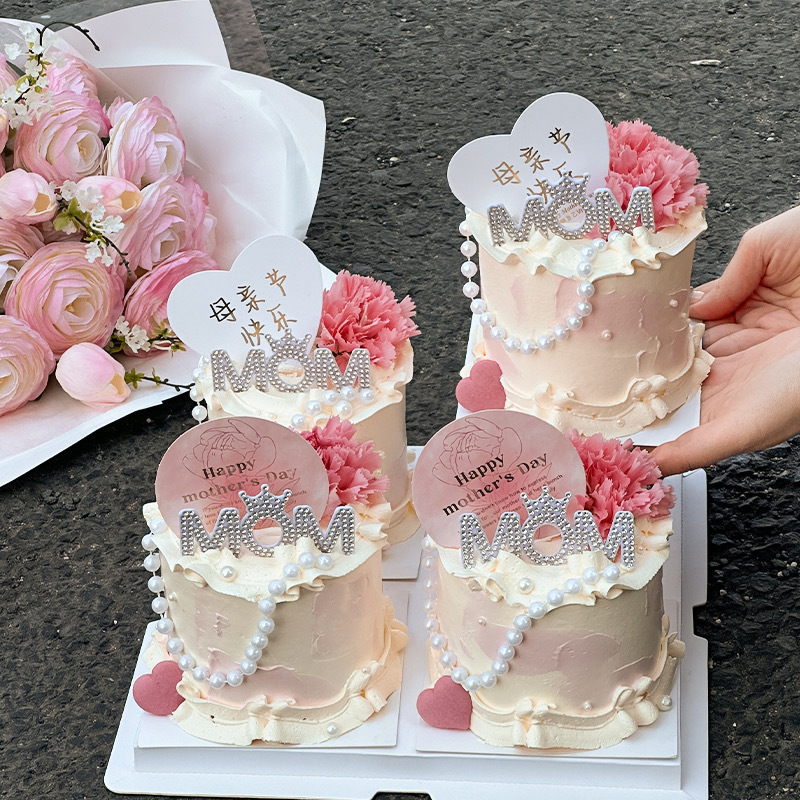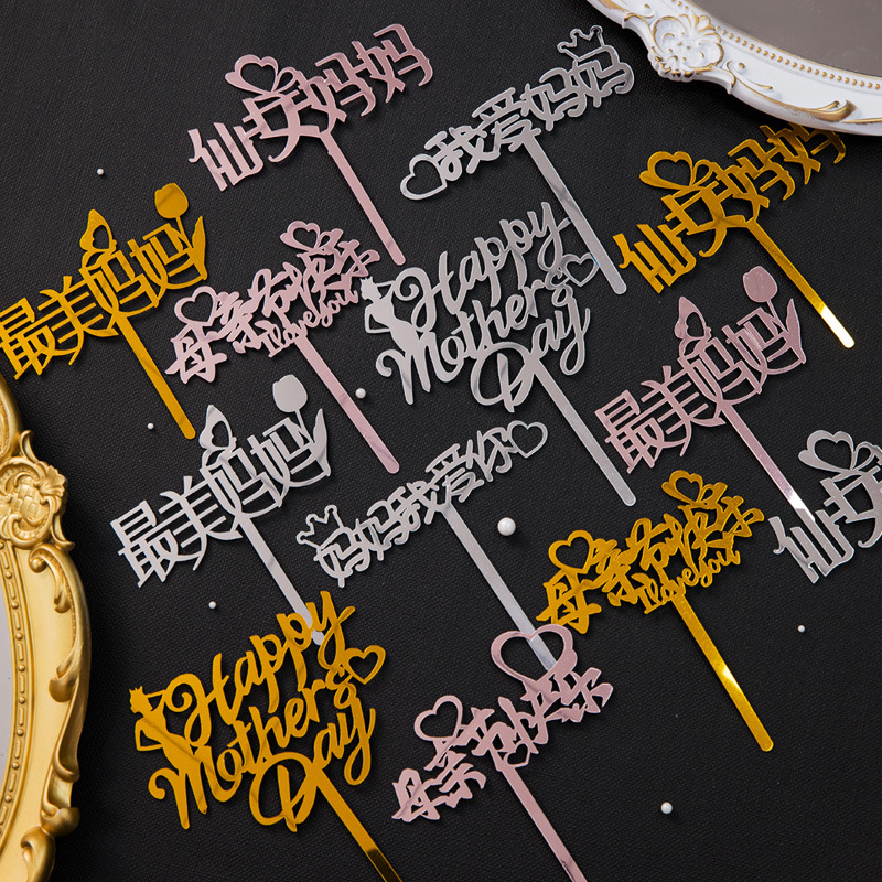 インターネット有名人母の日ケーキデコレーションソフト接着剤アイラブユーママMOMアクリルラブカードベーキングインサート