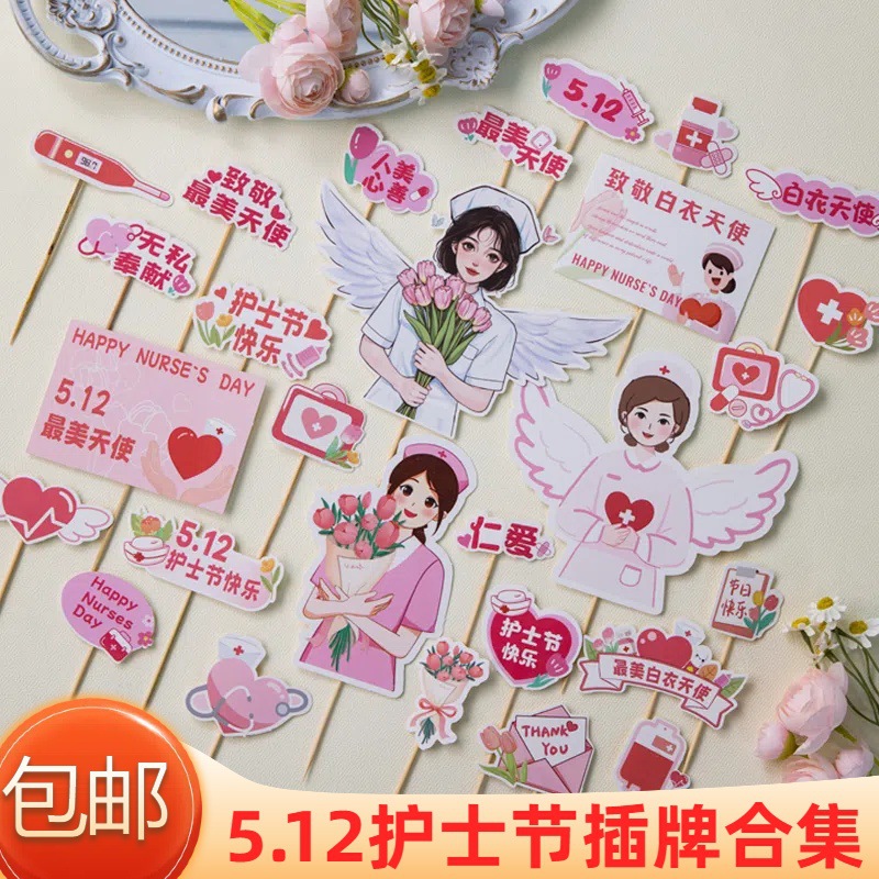 2025看護師節ケーキ装飾カード5.12看護師白衣天使祝日楽しいプラグイン服装カード