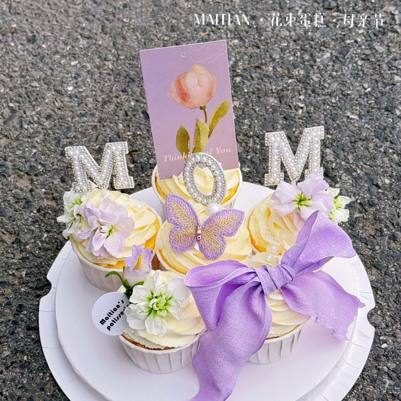 2025 母の日カップケーキデコレーションパールママプラグインハッピー母の日バタフライカードプラグイン