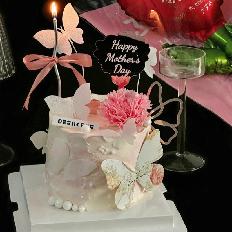 2025 ハッピー母の日カード ケーキデコレーションカード 美しい蝶と花 アクリルマザーホリデープラグイン