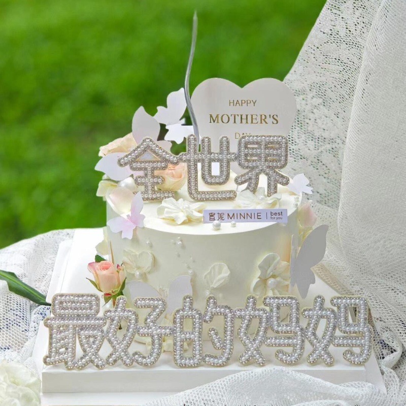 2025 母の日ケーキデコレーションパールダイヤモンドママオーナメントハッピーホリデーラブカードベーキングデコレーションプラグイン
