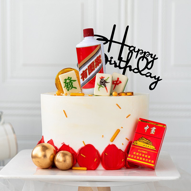 ネットの赤いケーキは酒の瓶の華子のたばこの箱のお父さんの男性の男性の神の誕生日のミニ白酒を飾って飾って飾って飾っています。