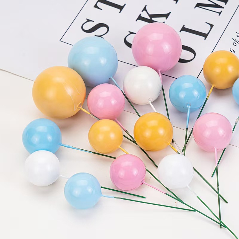 色のボールの金色のボールのピンクの青い白いボールのケーキの装飾のプラグインの焙煎の挿し札の置物のパーティーの焙煎