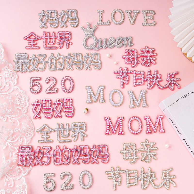 母の日のケーキは美しい真珠のダイヤモンドのMOMプラグインのネットの赤い女子学生のお母さんの誕生日のデザートの台を飾ってカードを挿します。