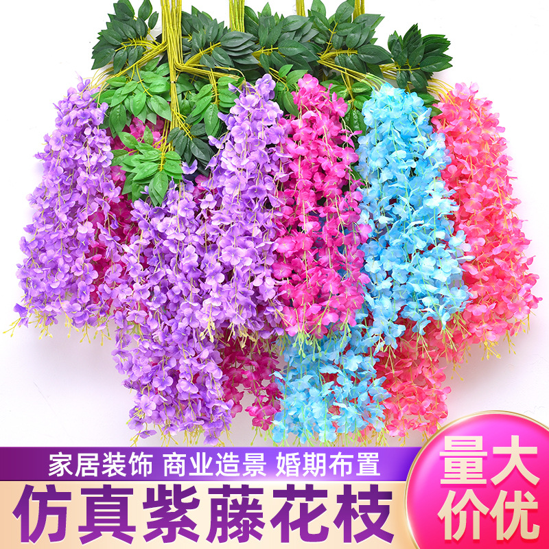 人工藤の花、豆の花、高密度造花、結婚式のアーチ、緑の植物、リビングの天井、壁掛けの花、藤の装飾工事