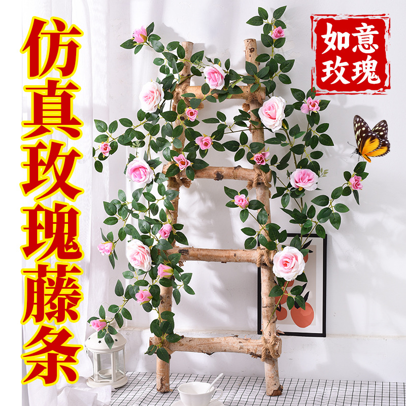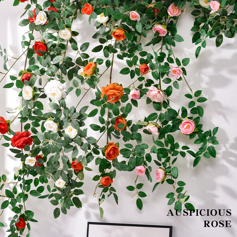 造花ローズティー、バラのつる、フェイクグリーン、室内天井、エアコン配管巻き、ウェディングアーチ装飾、卸売