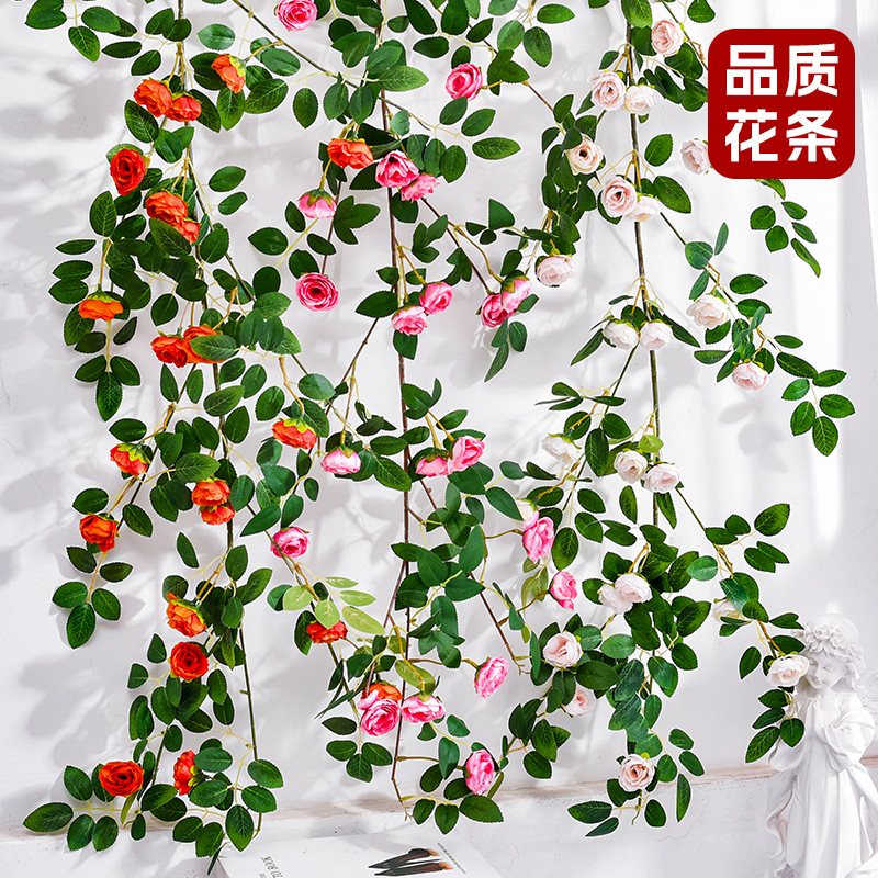 模擬如意バラのつる造花壁掛け壁掛けつる屋内エアコンパイプブロック結婚式の天井装飾