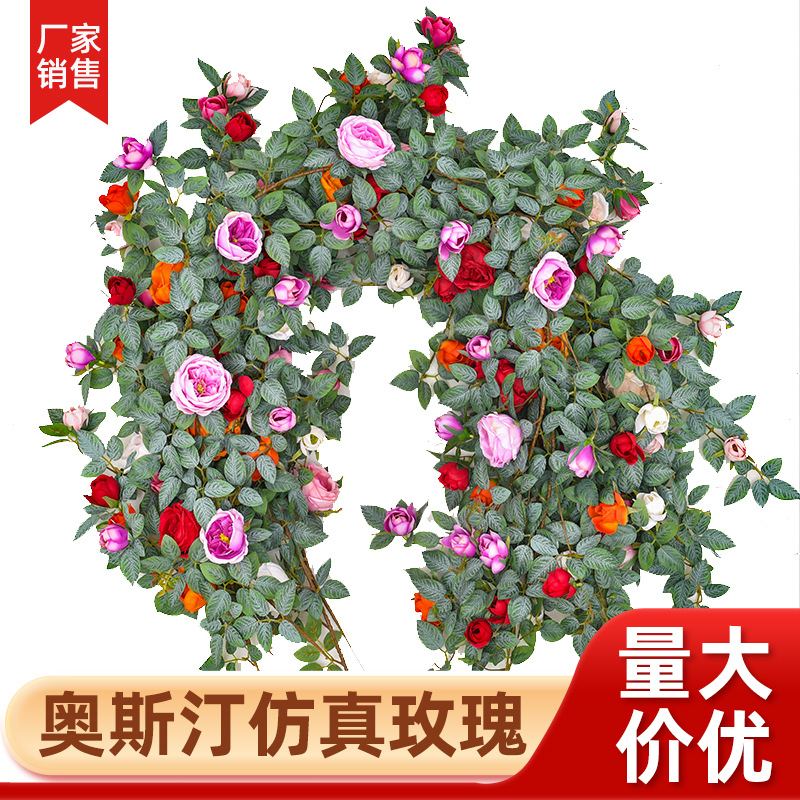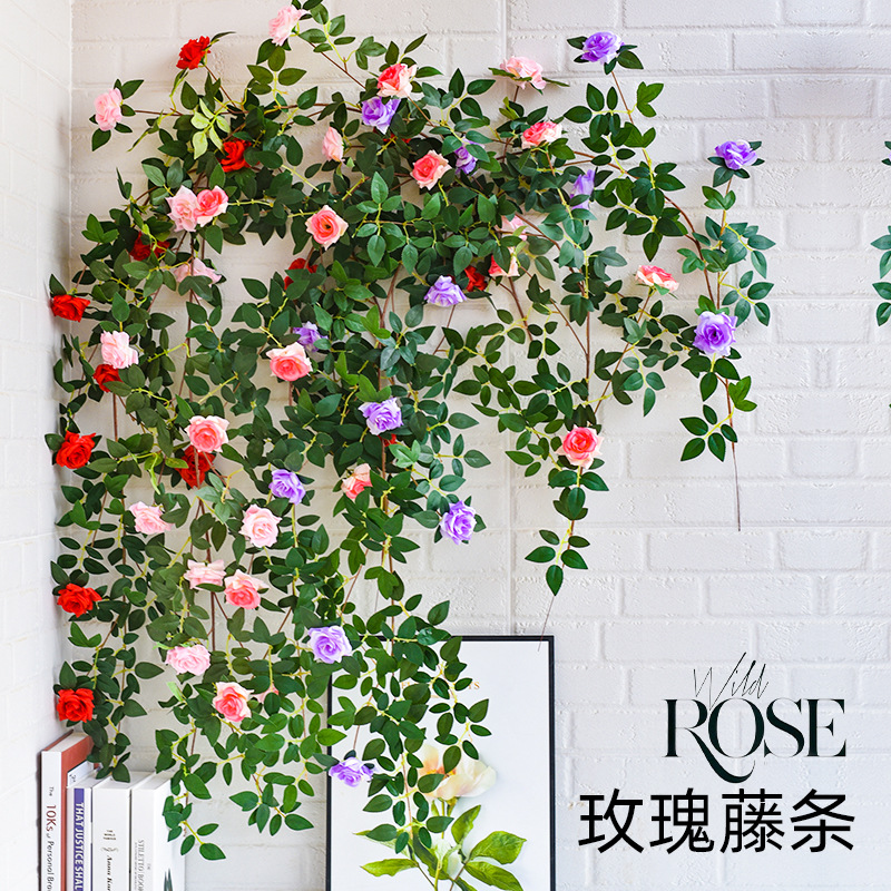 仿真情人玫瑰藤蔓假花绿植室内吊顶空调管缠绕婚庆拱门装饰批发