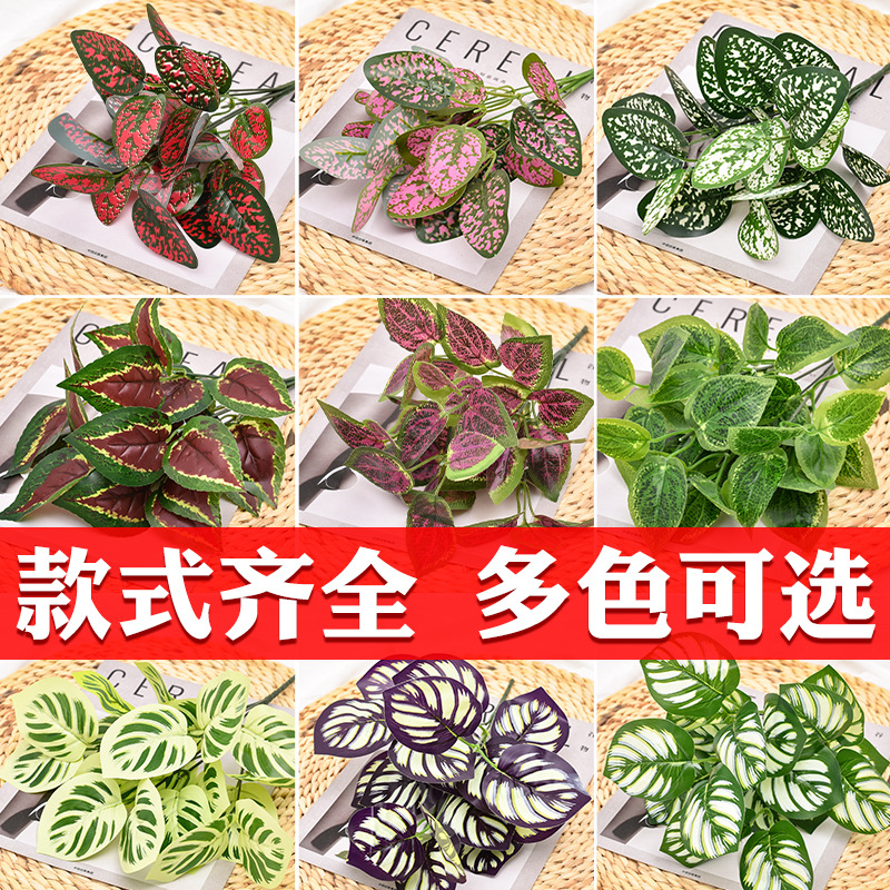 仿真绿植假绿叶人造草室内植物墙配材绿植小把草装饰批发