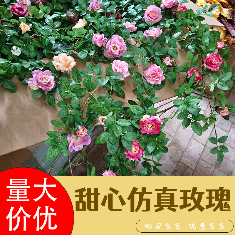 仿真甜心玫瑰藤蔓爬墙假花婚庆花室内空调管缠绕遮挡门头装饰批发