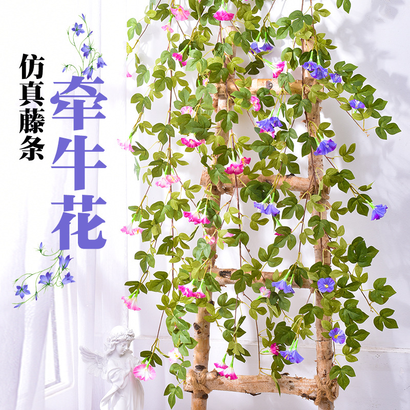 仿真牵牛花藤蔓假花喇叭花绿植室内吊顶空调管缠绕婚庆装饰批发