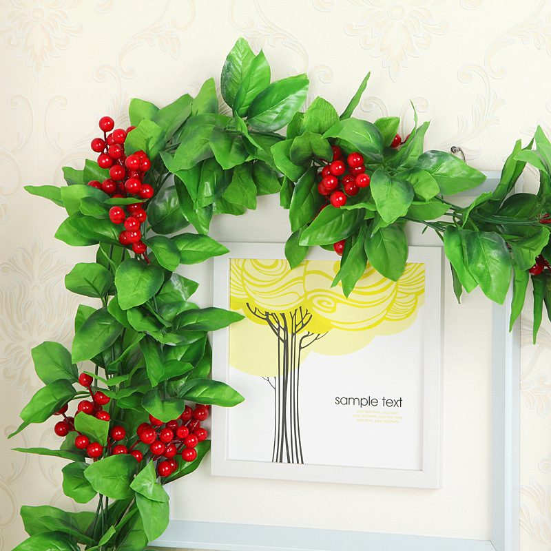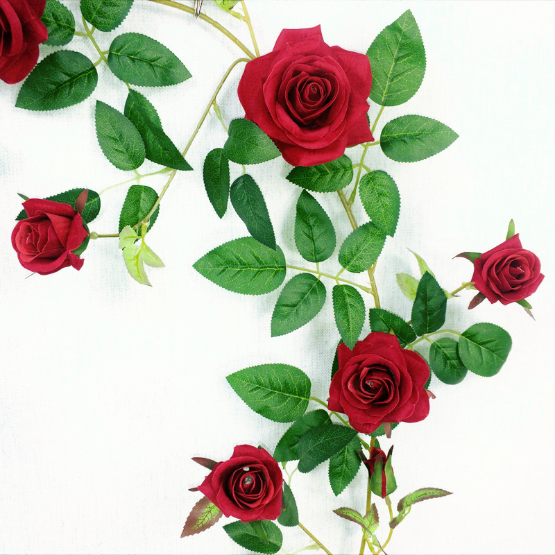 造花のバラのベルベットの花のつる、フェイクフラワー、緑の植物、天井のエアコンのパイプを巻く、結婚式のアーチの装飾、卸売