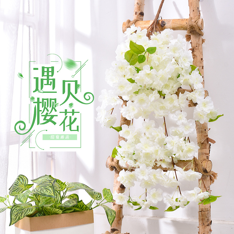 批发仿真樱花樱花枝假花藤蔓人造花家居壁挂绢花婚庆拱门装饰