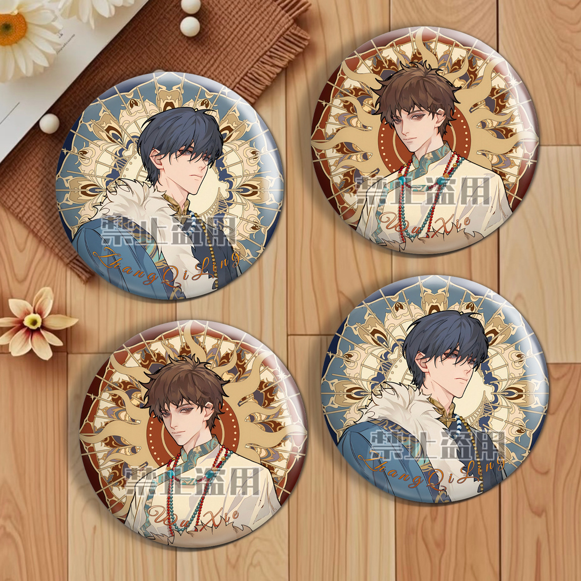 盗墓日記 レーザーバッジ 張啓玲 ウー・イェ アニメ周辺ファン ダブルフラッシュ缶詰ブローチ