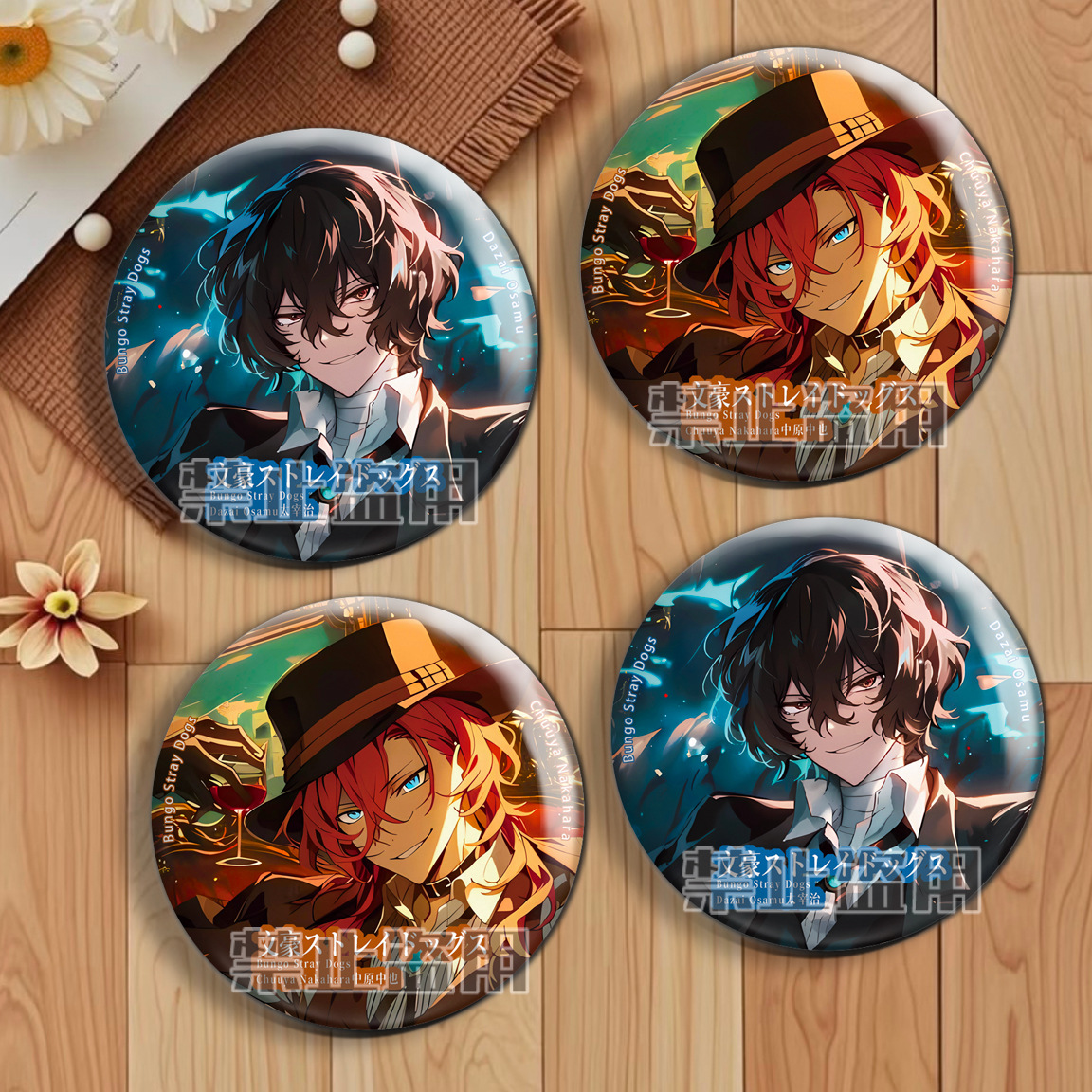 文豪ストレイドッグス レーザーバッジ 太宰治 中原中也 アニメ周辺ファン ダブルフラッシュバッジ 75 グリッターブローチ