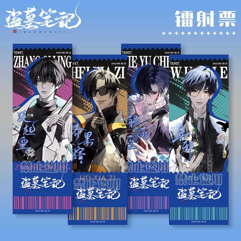 盗墓のノートのレーザーの切符の張起霊の呉邪の黒の盲人の解雨臣のアニメの周辺の紙のブックマークの同人の収集カード