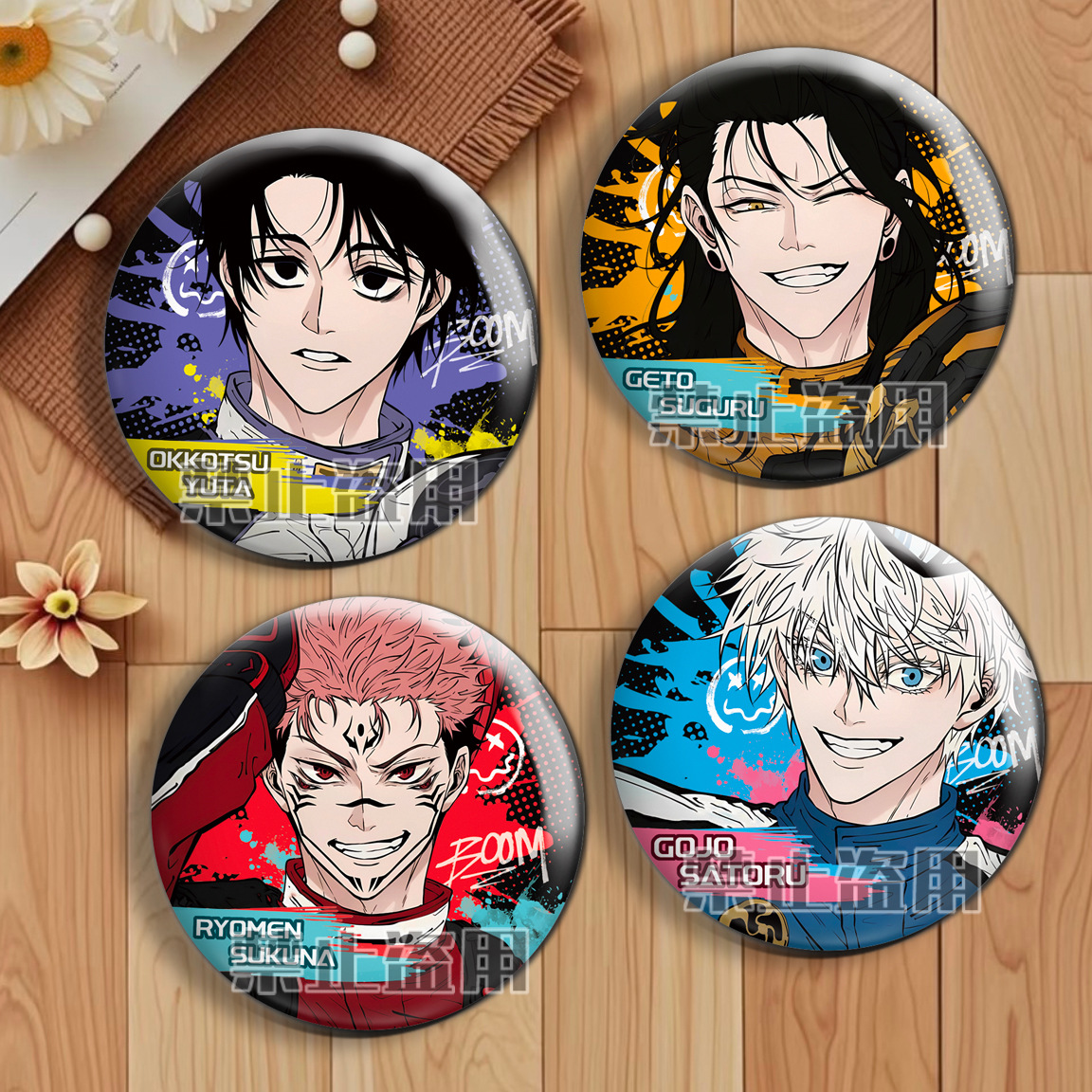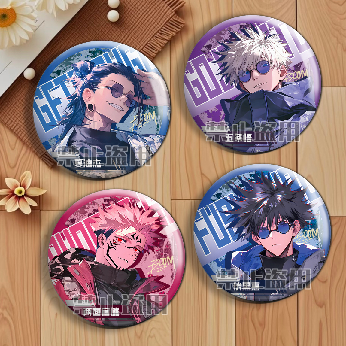 絵師公認 魔術戦レーザーバッジ 五条悟 夏油傑 虎杖黒恵 犬巻棘バジ谷