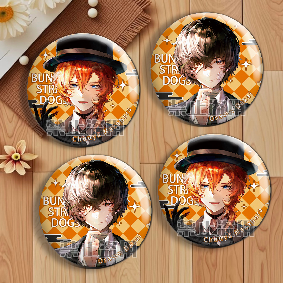 絵師授権文豪野犬レーザーバッジ太宰治中原中也ブリキ同人バー谷子ブローチ