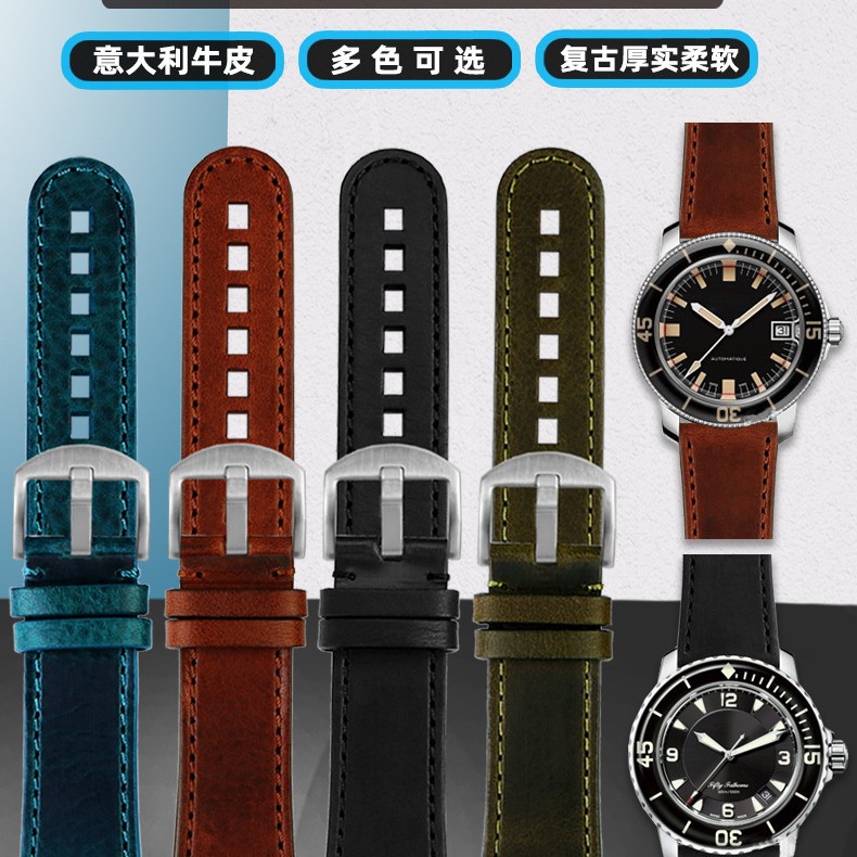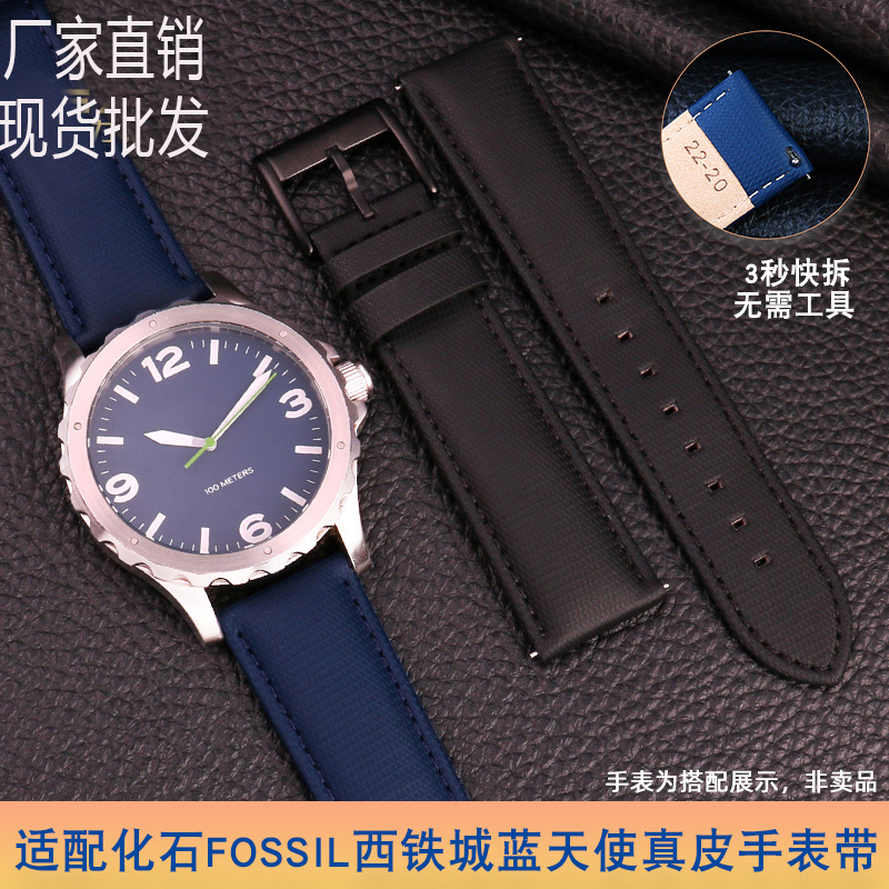 現物卸売り牛革腕時計バンドは化石知能西鉄誠藍天使一二代22 23mm黒青に適合している