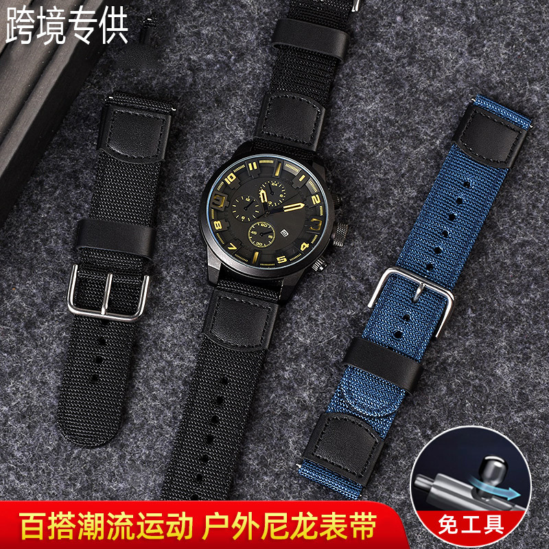ナイロン腕時計バンド男女防水帆布代用精弓緑水鬼西鉄成バンド20 22mm