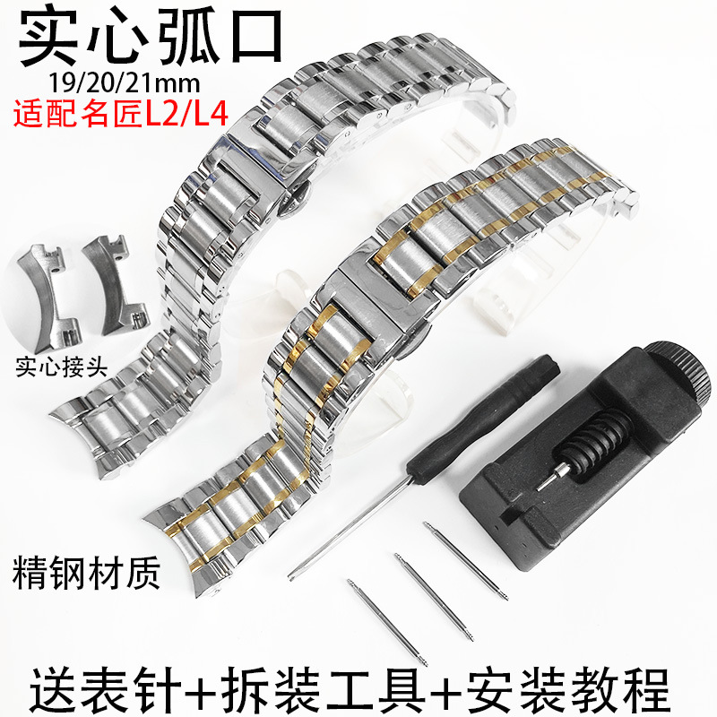 代替品 Langmouqin 名匠時計ストラップ ステンレス鋼 L2L4 19/20/21mm オリジナルグレードの高級スチール時計チェーン男性用