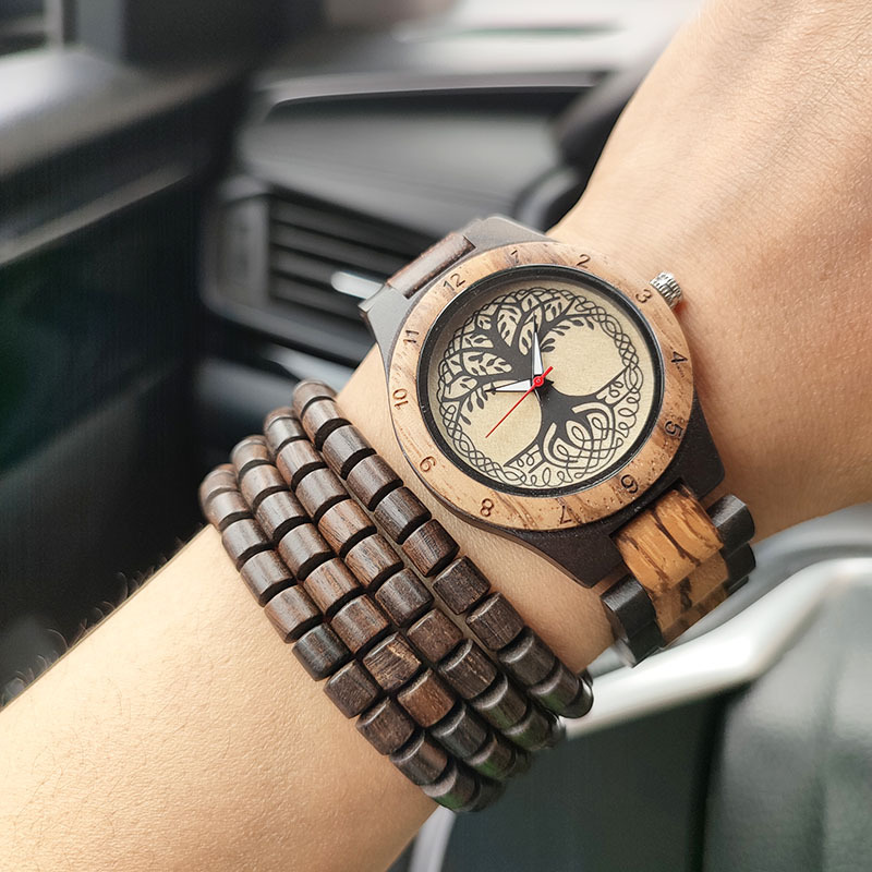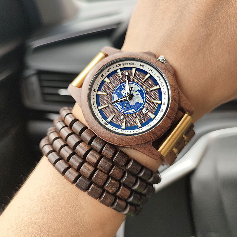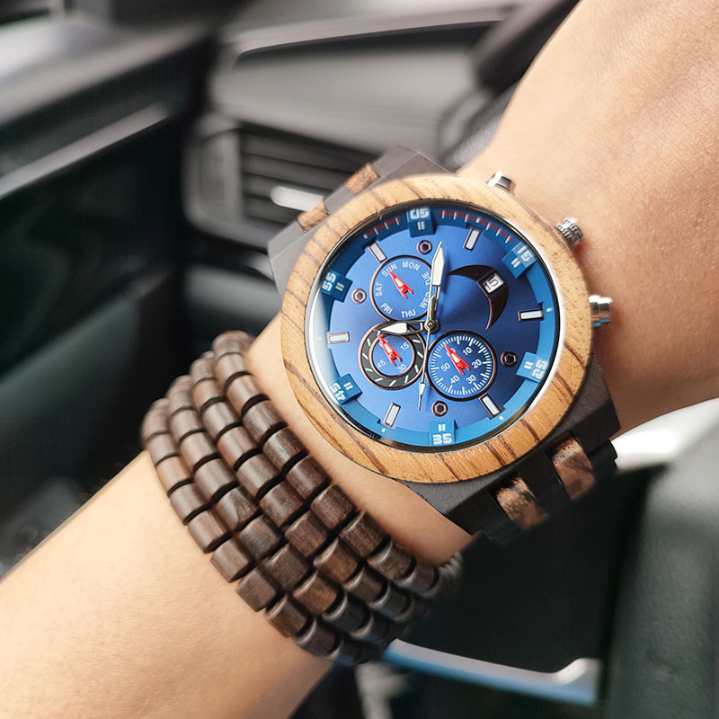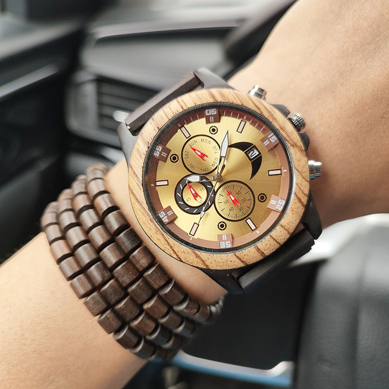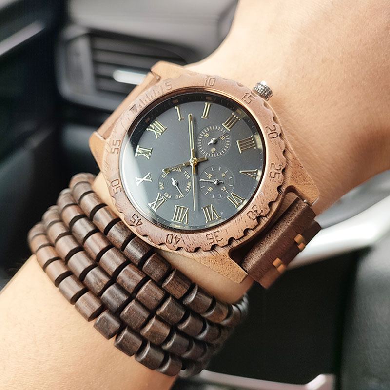 腕时计メンズクォーツ时计高级感大人カジュアルスポーツ腕时计原木工芸品记念日プレゼント腕时计