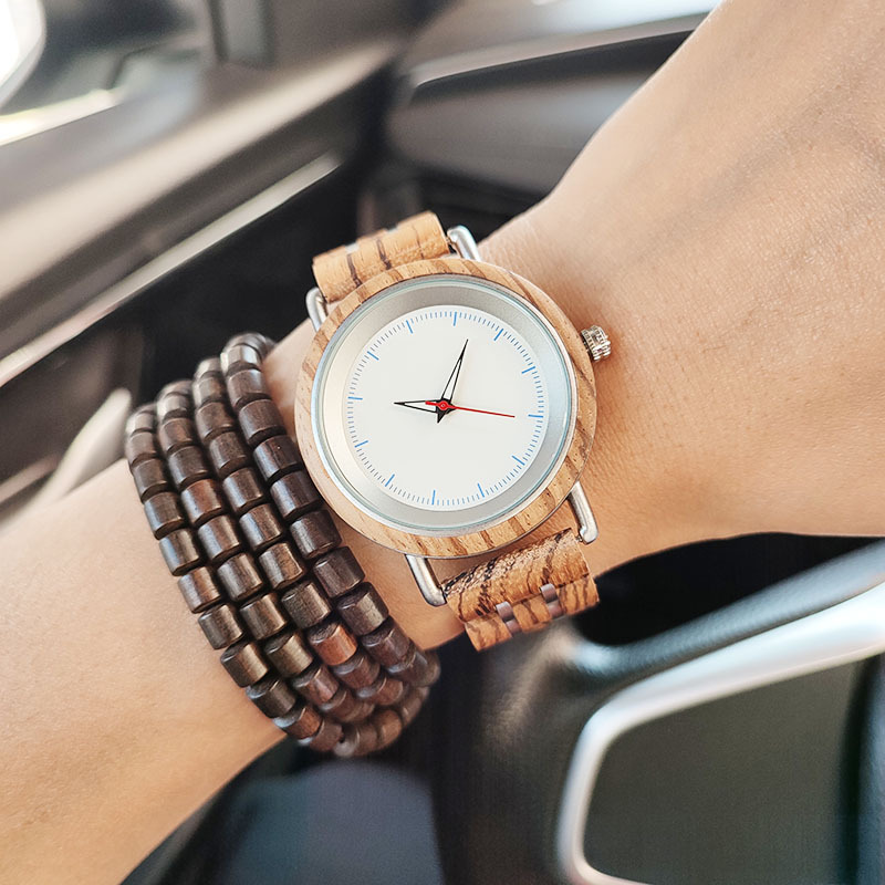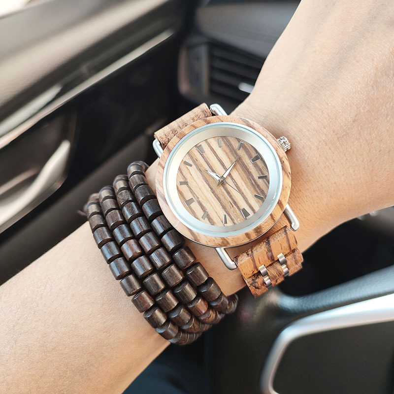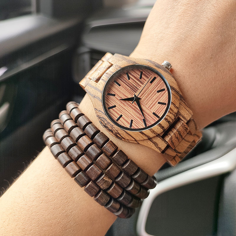 現物は木の工芸品のゼブラ木の腕時計を代行します。
