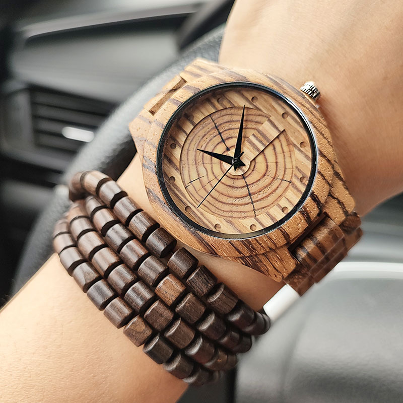 メンズ腕时计年轮原木クリエイティブデザイン高级感おしゃれシンプルクォーツ时计记念日プレゼント