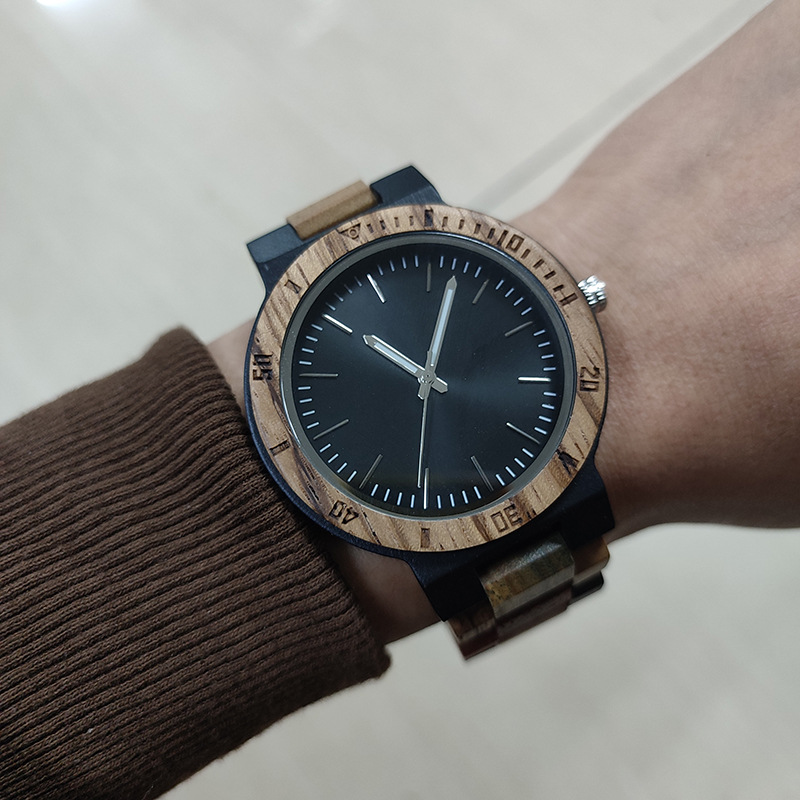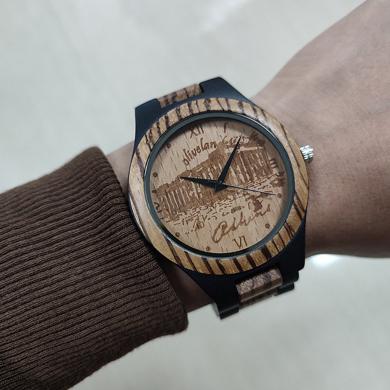 2024新品黒檀木の間にシマウマの木の腕時計海賊船の創意的な木の時計insの経典の木の腕時計