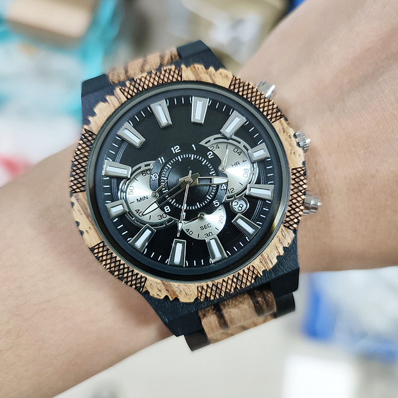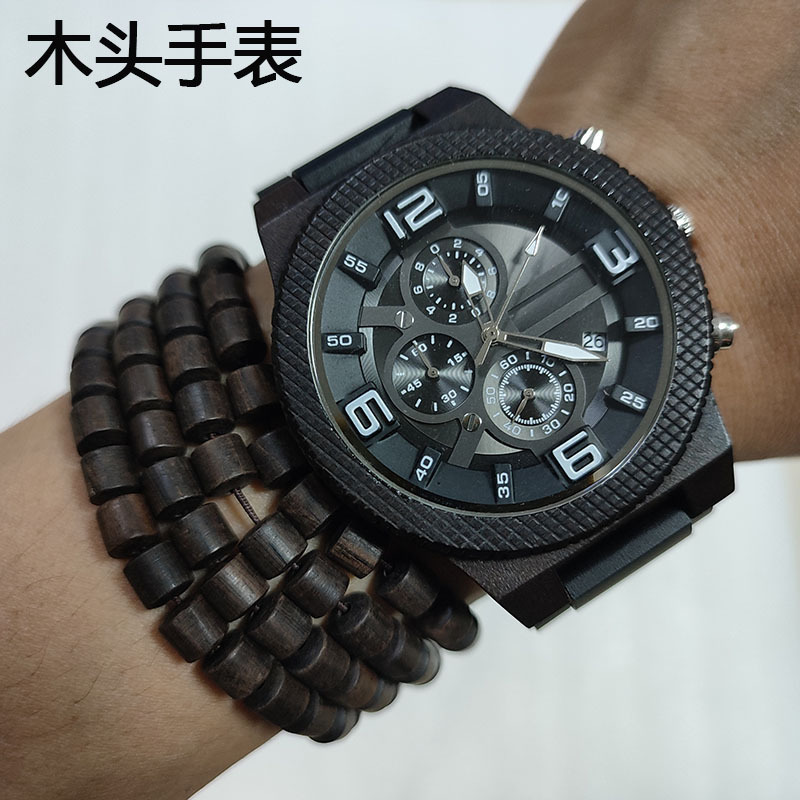 三眼カレンダー木質腕時計実木原木腕時計現物クロスボーダー専用の大発石英時計