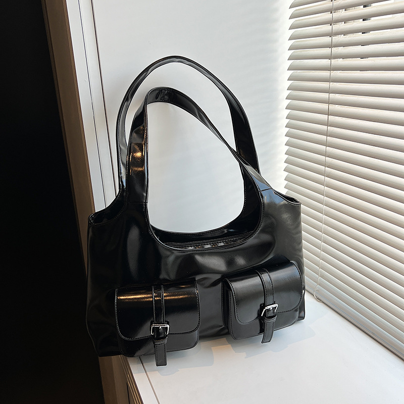 クロスボーダーニッチテクスチャーパテントレザーハンドバッグレディース2025新作シンプル三日月バッグファッションシングルショルダー脇の下クロスボディバッグ