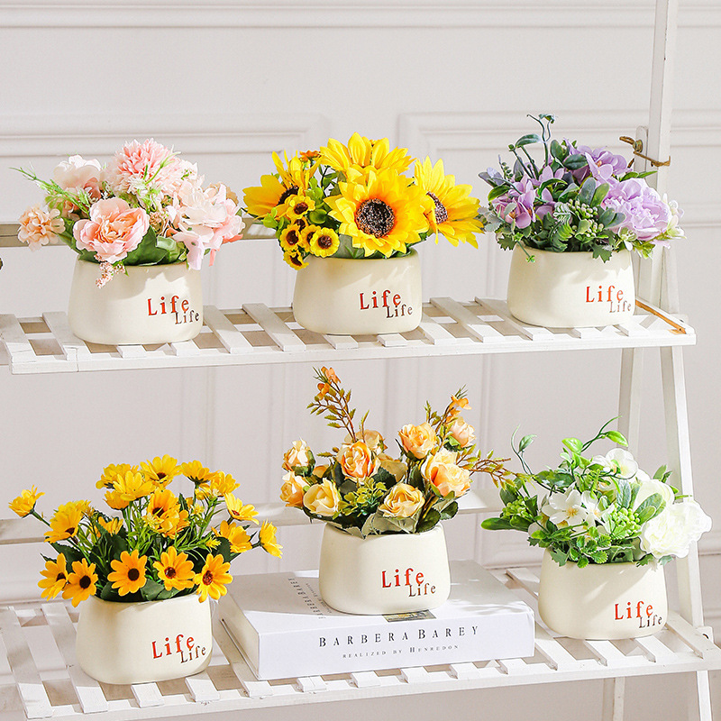 友伴シミュレーション鉢植えのデスクトップ人工花アマゾンパルプ盆の家庭用ミニ装飾品