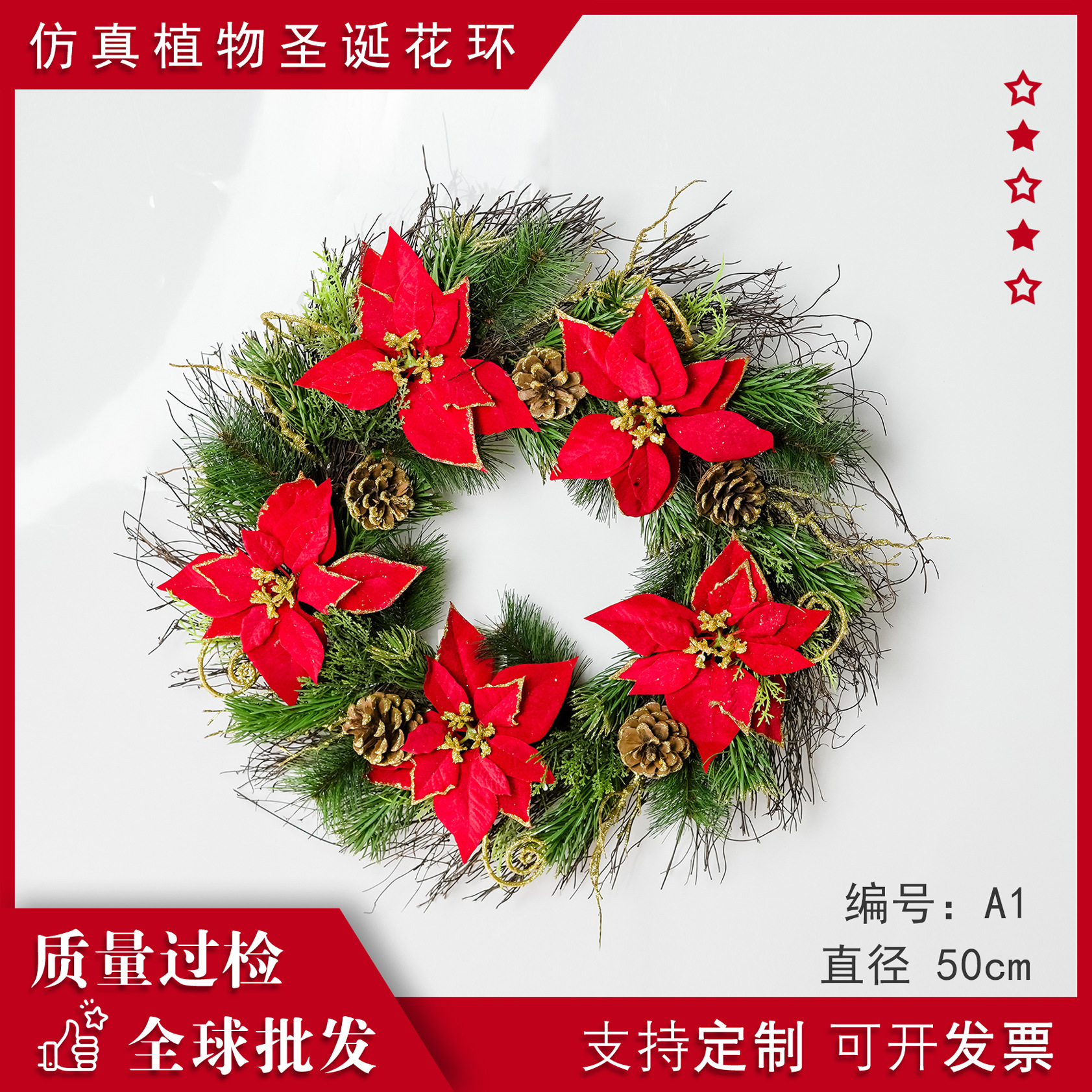 友達のシミュレーション植物のクリスマスの赤い祝日の工芸品のクリスマスの花輪の門の花の越境の電気商の熱い販売の鋳型