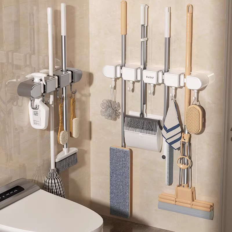 モップクリップ壁掛け穴なしほうきモップフック固定棚トイレ浴室扉後物棚神器
